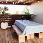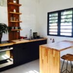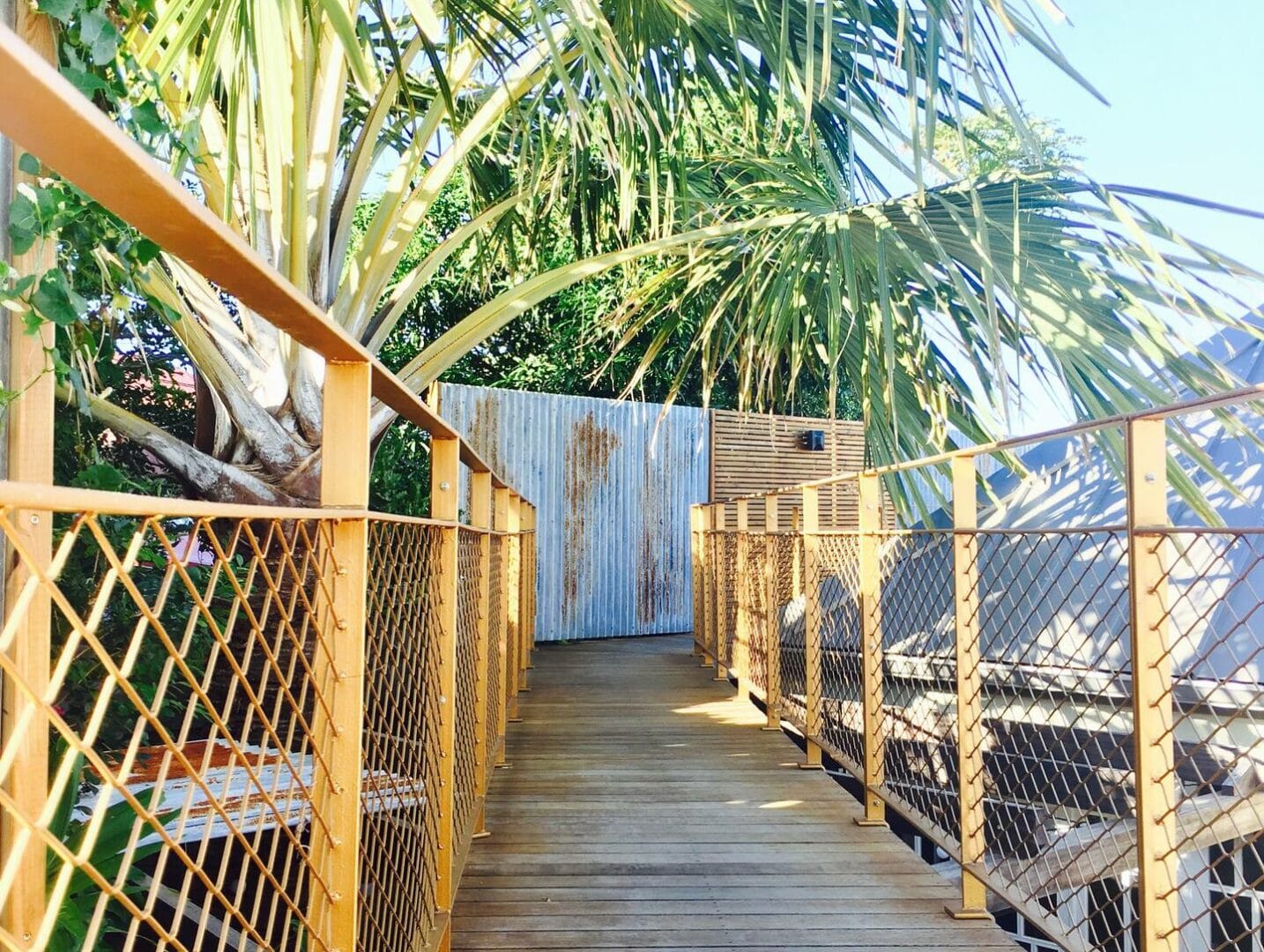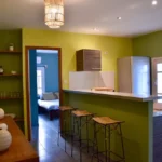 Une cuisine équipée est mise à disposition des voyageurs, ainsi qu’une terrasse avec un espace pour se restaurer.
