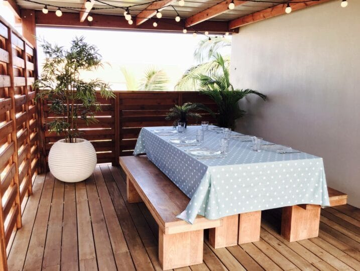 Nous mettons à votre disposition une cuisine équipée et une terrasse avec un espace repas.